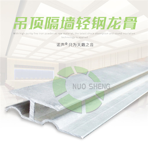 諾聲輕鋼龍骨是用來支撐造型、固定結構的一種建筑材料。輕鋼龍骨是幾年來非常熱門的一種裝潢材料,它可以用來吊頂,隔墻,防火性能較強,用輕鋼龍骨可以做出各種漂亮的造型。根據使用部位來劃分,又可分為吊頂龍骨、豎墻龍骨(隔墻龍骨)、鋪地龍骨以及懸掛龍骨等。根據裝飾施工工藝不同,還有承重及不承重龍骨(即上人龍骨和不上人龍骨)等。